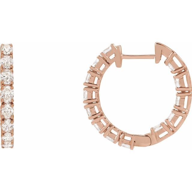 14K Gold Natural Diamond Inside-Outside Hoop Earrings - Options Available