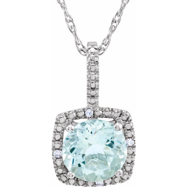 Natural Aquamarine And .015 Ctw Natural Diamond Birthstone Necklace