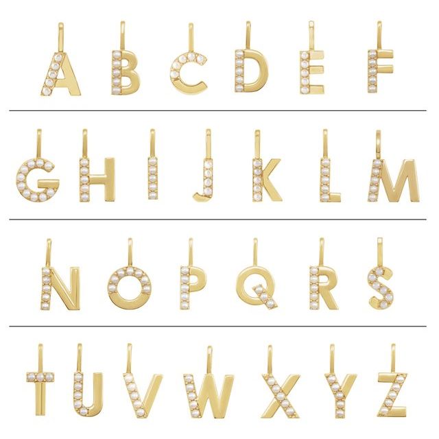 14K Gold Cultured White Freshwater Pearl Initial Charm/Pendant