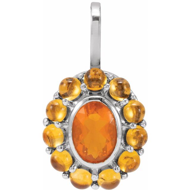 14K Gold Natural Mexican Fire Opal And Natural Cabochon Citrine Halo-Style Pendant