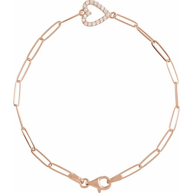 1/3 CTW Natural Diamond Heart and Paperclip Style Bracelet in 14K Gold